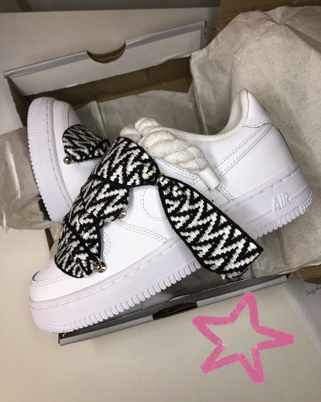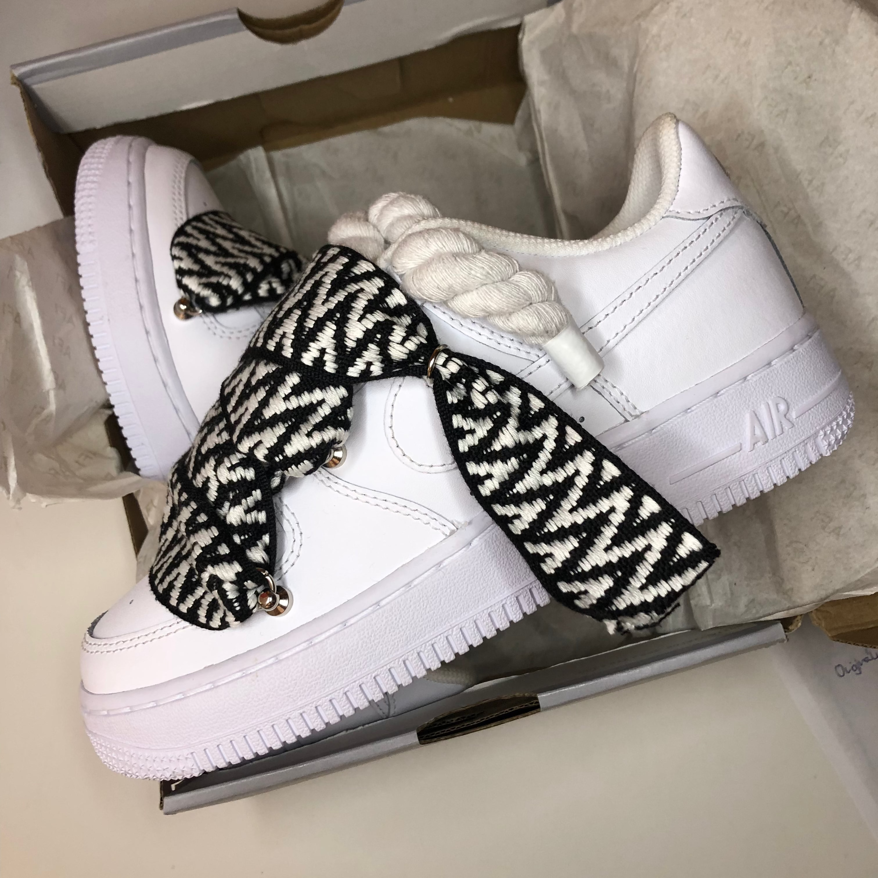 Custom Nike air Force 1 rope laces with over laces - zebra